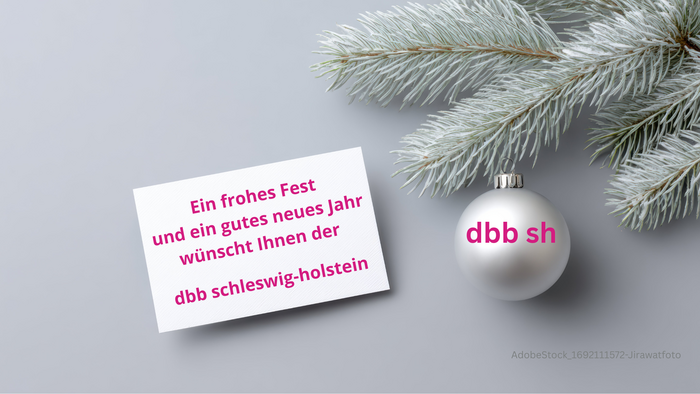 Der Landesvorstand des dbb schleswig-holstein bedankt sich bei seinen Mitgliedsorganisationen und deren Einzelmitgliedern für den guten Zusammenhalt im Jahr 2025! Es zeigt sich, dass die dadurch entstehende Solidarität und Durchsetzungsfähigkeit Früchte tragen. Möge dies ein Ansporn sein für noch abseits stehende Kolleginnen und Kollegen, sich der Gemeinschaft der auf den öffentlichen Dienst spezialisierten Interessenvertretung nicht länger zu entziehen. Wir wünschen frohe Feiertage und einen guten Start in ein sicher ereignisreiches neues Jahr! In diese Wünsche beziehen wir selbstverständlich alle Verhandlungs- und Kooperationspartner ein.