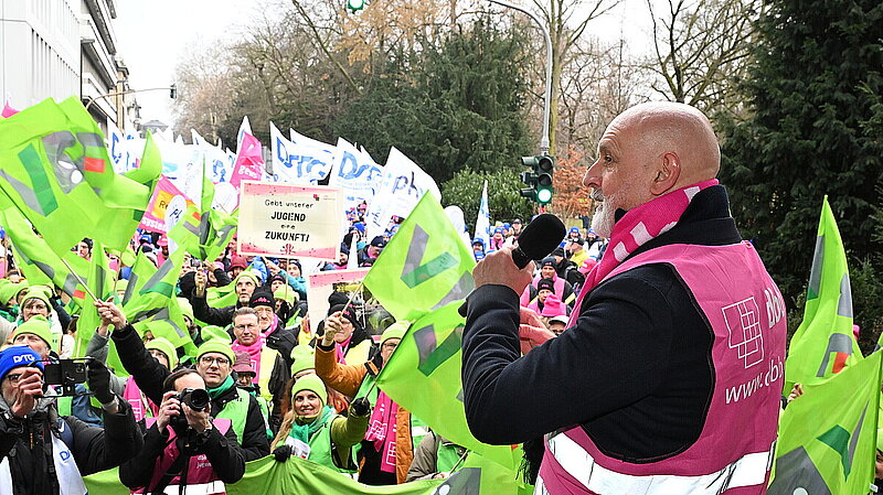 „Zu viel Taktiererei und zu wenig politischer Wille“, lautet der Vorwurf des dbb-Bundesvorsitzenden Volker Geyer bei der Großdemonstration in Düsseldorf am 10. Februar 2026 in Richtung an die Adresse der Tarifgemeinschaft deutscher Länder (TdL). „Unser Land steht vor drängenden Herausforderungen, die größer kaum sein könnten. Innen- und außenpolitisch ebenso wie wirtschafts- und sozialpolitisch. Aber egal, welchen dieser Teilbereiche wir betrachten: Nur mit einem starken und gut ausgestatteten öffentlichen Dienst werden wir diese Herausforderungen meistern können. Anstatt symbolische Schlachten über ‚Lifestyleteilzeit‘ oder Verbeamtungen zu führen, muss die Politik endlich die Gegenwart gestalten. Das muss sich endlich auch die TdL klar machen. Noch immer führt man dort die Tarifverhandlungen so, als sei das Ganze ein Gesellschaftsspiel, bei dem der verliert, der sich zuerst bewegt.“ Deshalb stand am Ende seiner Rede vor dem Düsseldorfer Landtag der klare Appell des dbb Chefs: „Morgen wird in Potsdam wieder verhandelt. Dann sollte es direkt konkret und ergebnisorientiert sein. Mit anderen Worten: Wir brauchen ein echtes Angebot, um bis Freitag zu einem Kompromiss zu kommen. Der Countdown läuft!“