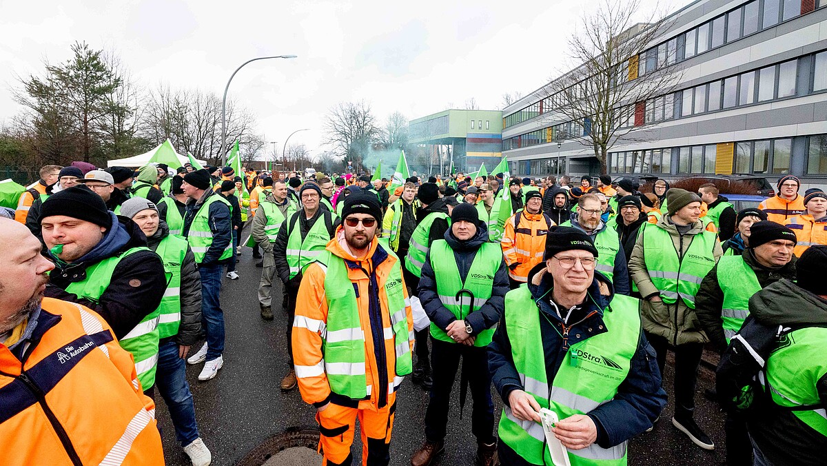 Kurz vor der dritten Verhandlungsrunde mit der Autobahn GmbH streiken die Beschäftigten in Hamburg und Halle (Saale).